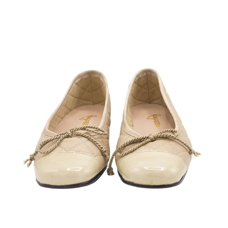 CÓMODA BAILARINA BICOLOR CON PUNTERA DE CHAROL Y LAZO AJUSTABLE.