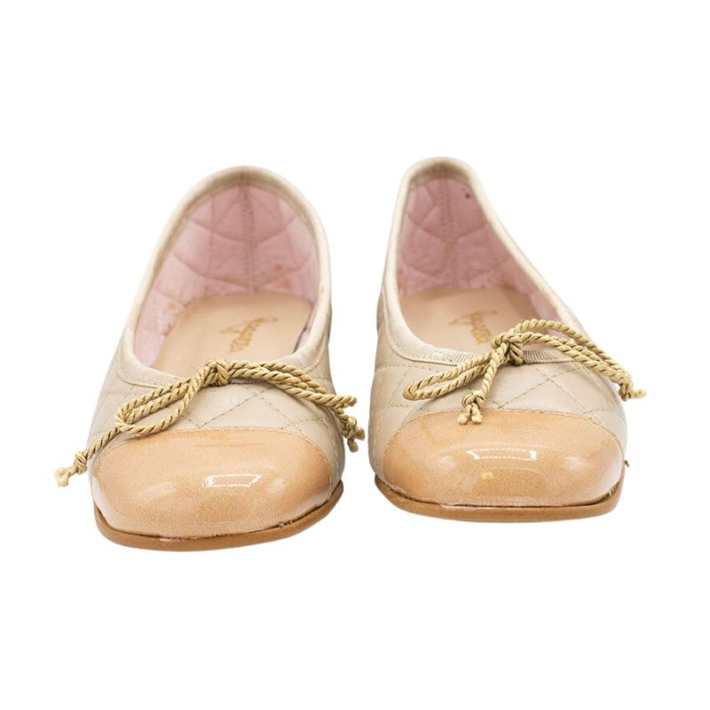CÓMODA BAILARINA BICOLOR CON PUNTERA DE CHAROL Y LAZO AJUSTABLE.