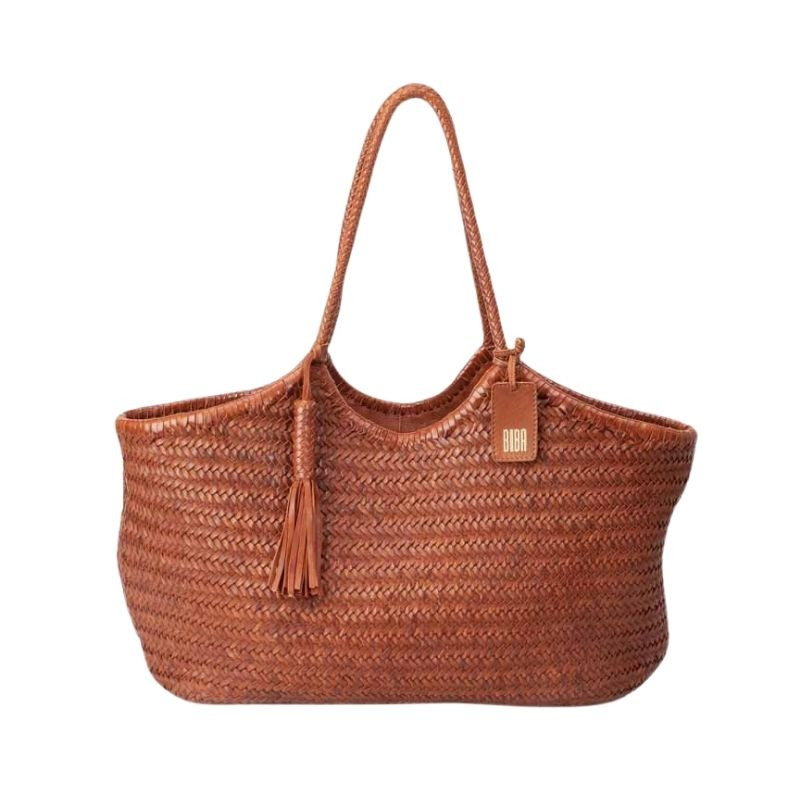 SHOPPER EXTRA GRANDE DE PIEL VACUNA, LAVADA, DE CURTICION VEGETAL, Y TRENZADA A MANO. CIERRE CON CREMALLERA, BOLSILLOS INTERNOS, Y FORRO DE ALGODON.