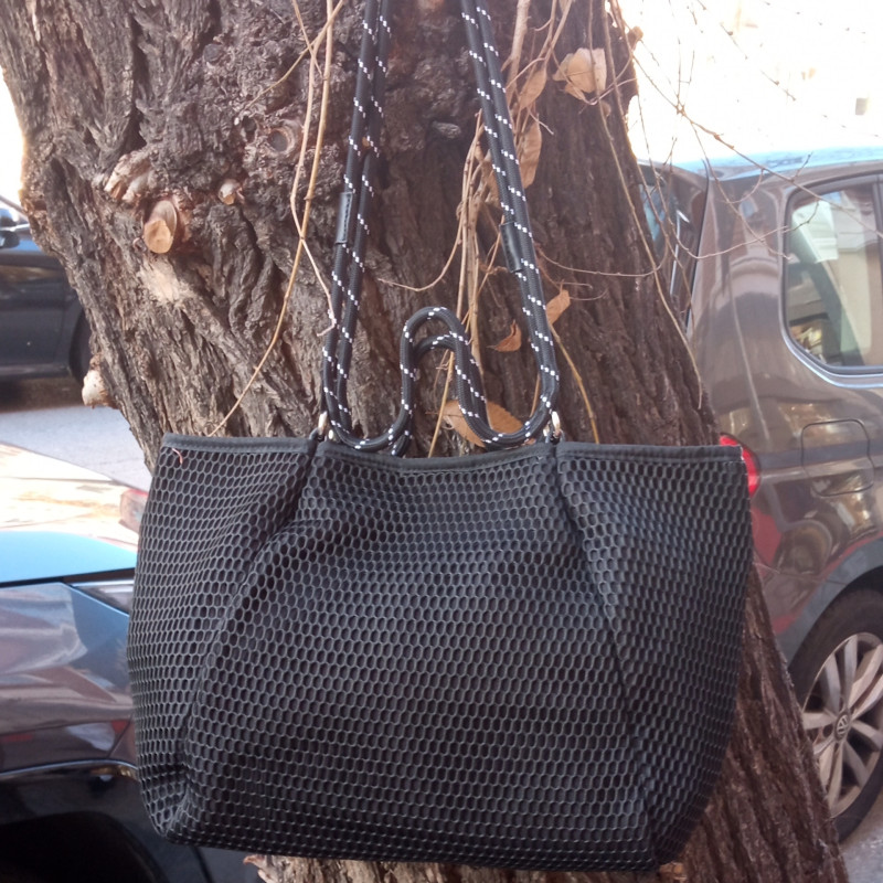 BOLSO SHOPPER CON DOBLE ASA: COTA Y LARGA DE TELA DE MALLA