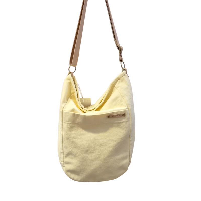 Bandolera de lona de algodón con asa de piel regulable. Tiene cremallera, un bolsillo exterior y uno interior con cremallera.