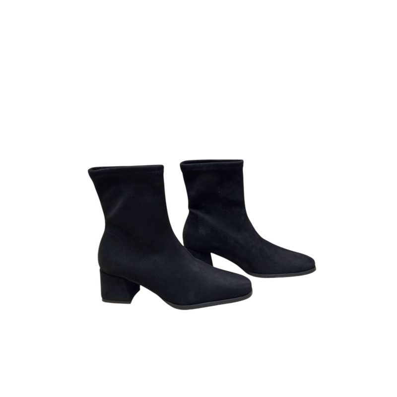 BOTÍN DE ANTE ELÁSTICO CON TACÓN MEDIO NEGRO