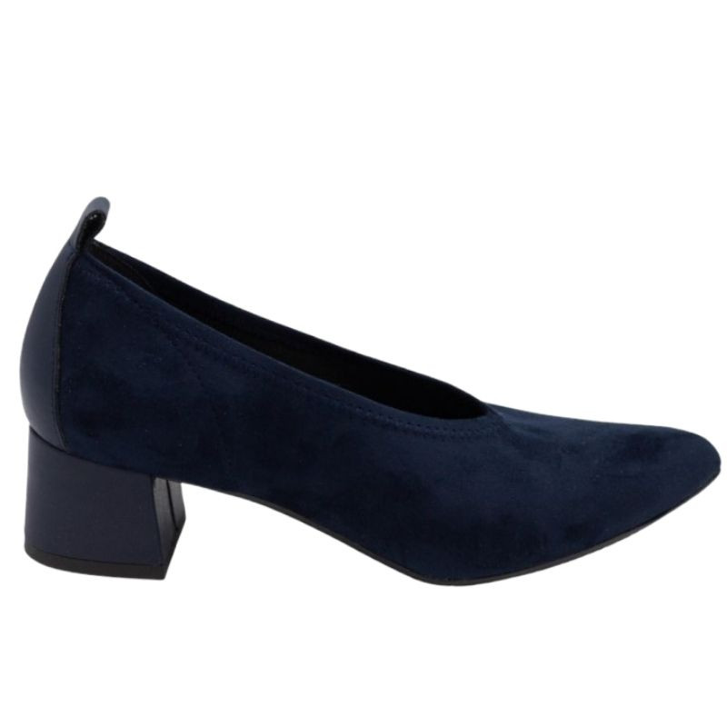 ZAPATO DE LICRA EFECTO ANTE, CON TACÓN BAJO Y CÓMODO, PERFECTO PARA LLEVARLO DURANTE HORAS.