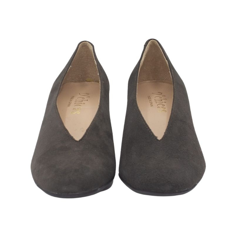 ZAPATO DE TACÓN CERRADO DE LADOS ANTE MARRON