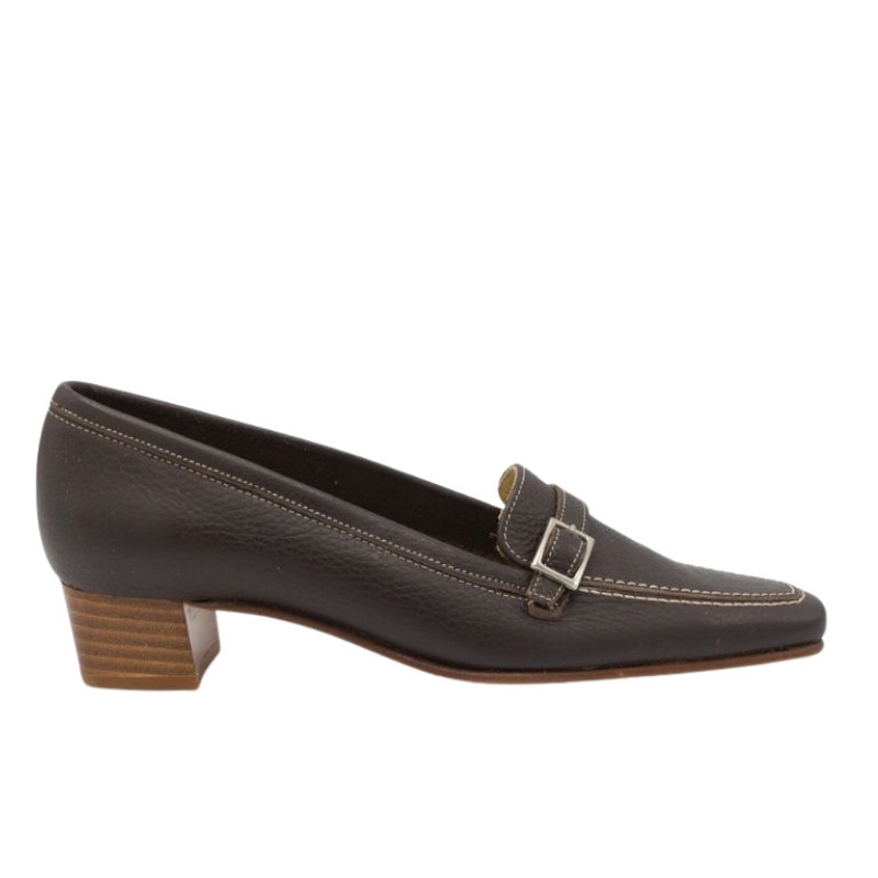 MOCASÍN CON HEBILLA Y TACÓN MARRÓN