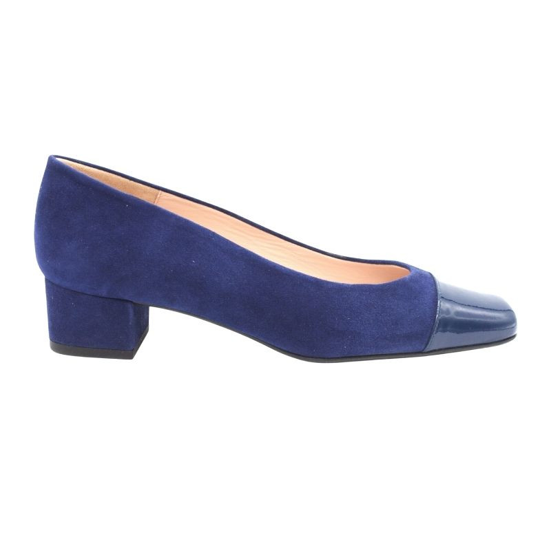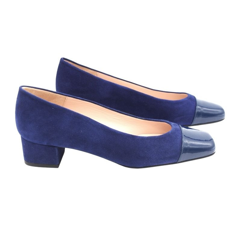 SALÓN CLÁSICO CON TACÓN MEDIO, EN ANTE CON PUNTERA EN CHAROL.