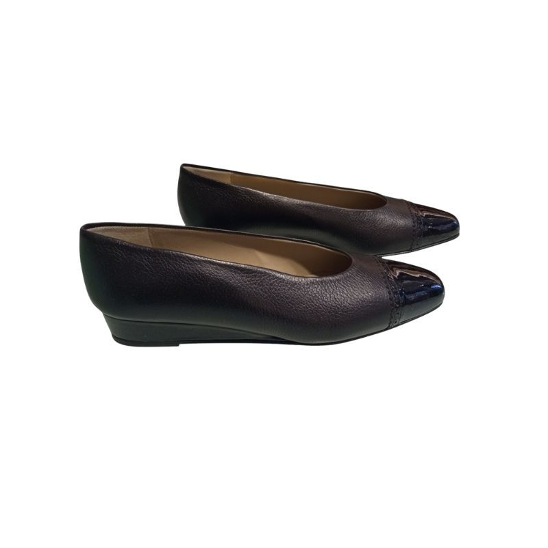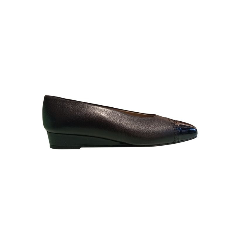 SALÓN CUÑA PIEL Y PUNTA CHAROL NEGRO