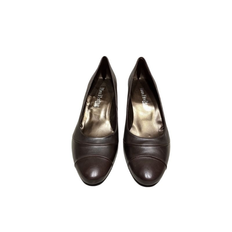 ZAPATO DE SALÓN DE PUNTA REDONDA CON ADORNO EN LA PUNTA DE VIVOS DE PIEL Y TACÓN ANCHO.