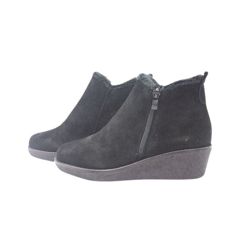 BOTIN CON CUÑA Y FORRO DE CONEJO NEGRO