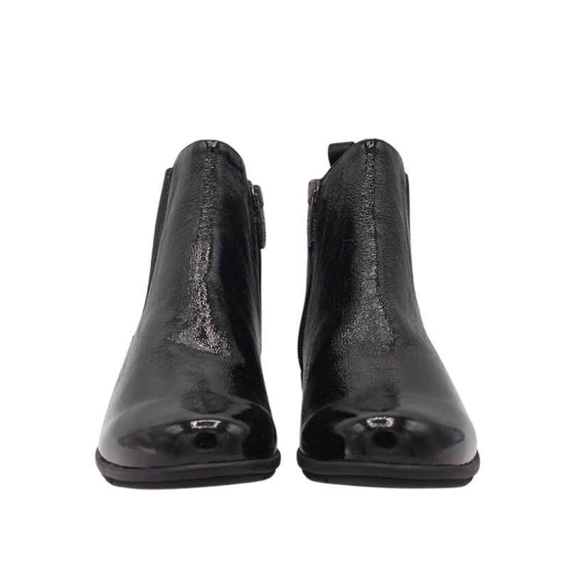 BOTIN CON CUÑA DE GOMAS Y CREMALLERAS DE CHAROL NEGRO