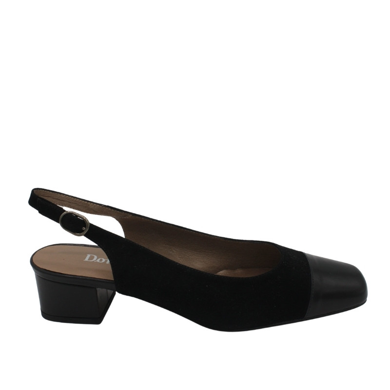 SALÓN DESTALONADO DE ANTE Y CHAROL NEGRO