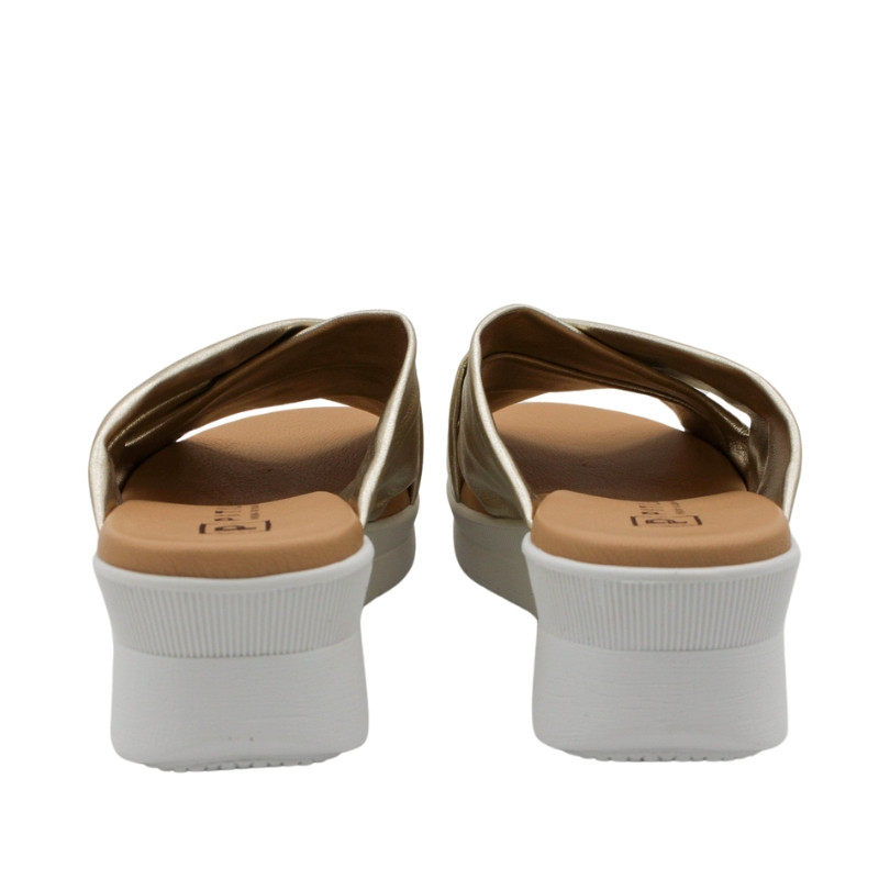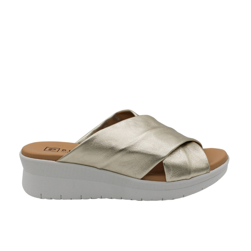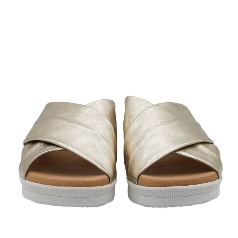 CUÑA DESTALONADA DE EMPEINE CRUZADO METALIZADO ORO