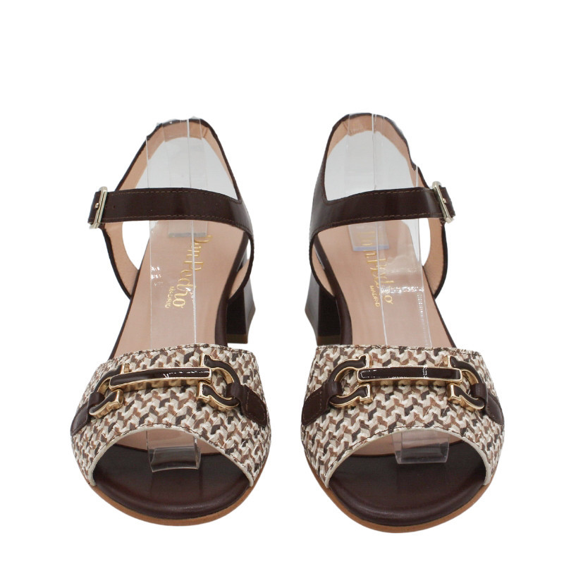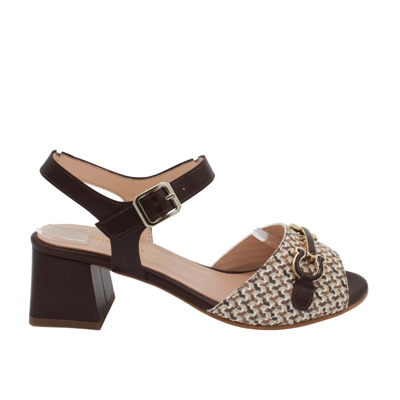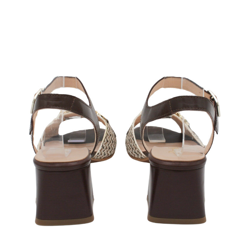 SANDALIA TACON MEDIO PIEL DECORADA MARRON