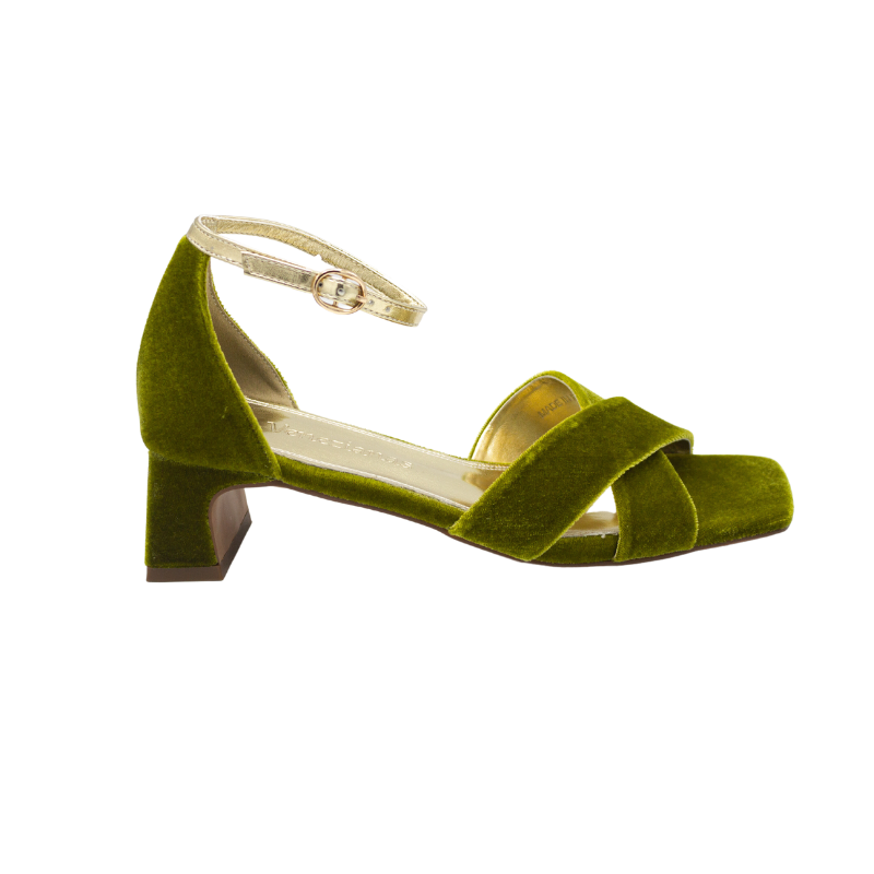 SANDALIA CON TIRAS CRUZADAS Y TACÓN BAJO VERDE