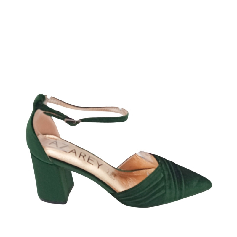 ZAPATO CON ESCOTE CRUZADO DE TERCIOPELO VERDE OSCURO