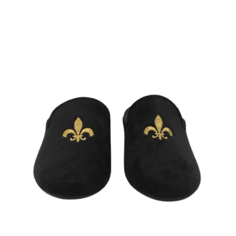 ZAPATILLA CHINELA TERCIOPELO FLOR DE LIS NEGRO